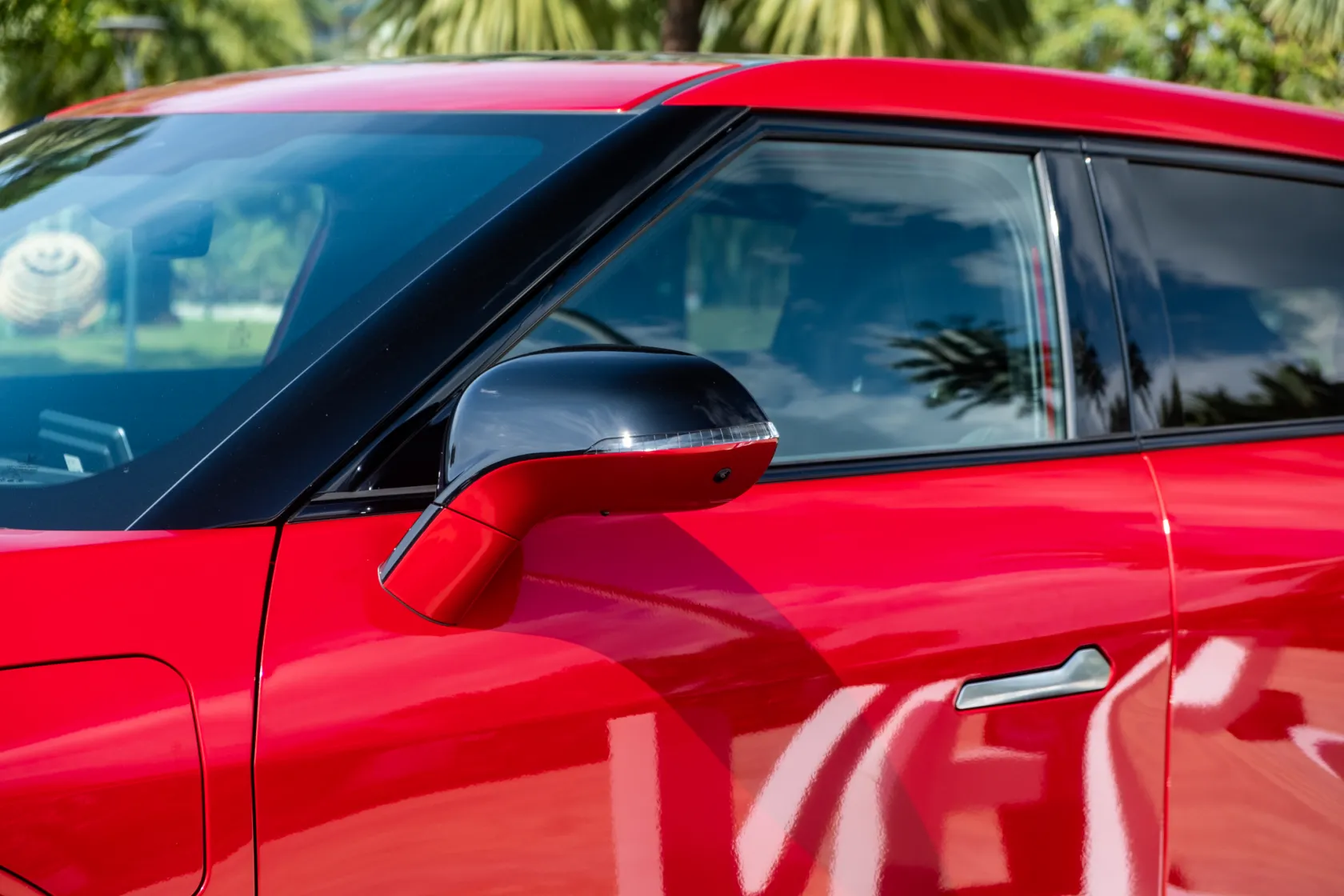 Phần trên của ốp kính chiếu hậu sơn đen bóng cũng trở thành điểm nhấn, tạo thêm sức hút cho thân xe VF 7. Tay nắm cửa thiết kế ẩn, không chỉ mang đến sự sang trọng cho mẫu ô tô điện phổ thông, mà còn tăng thêm tính khí động học.
