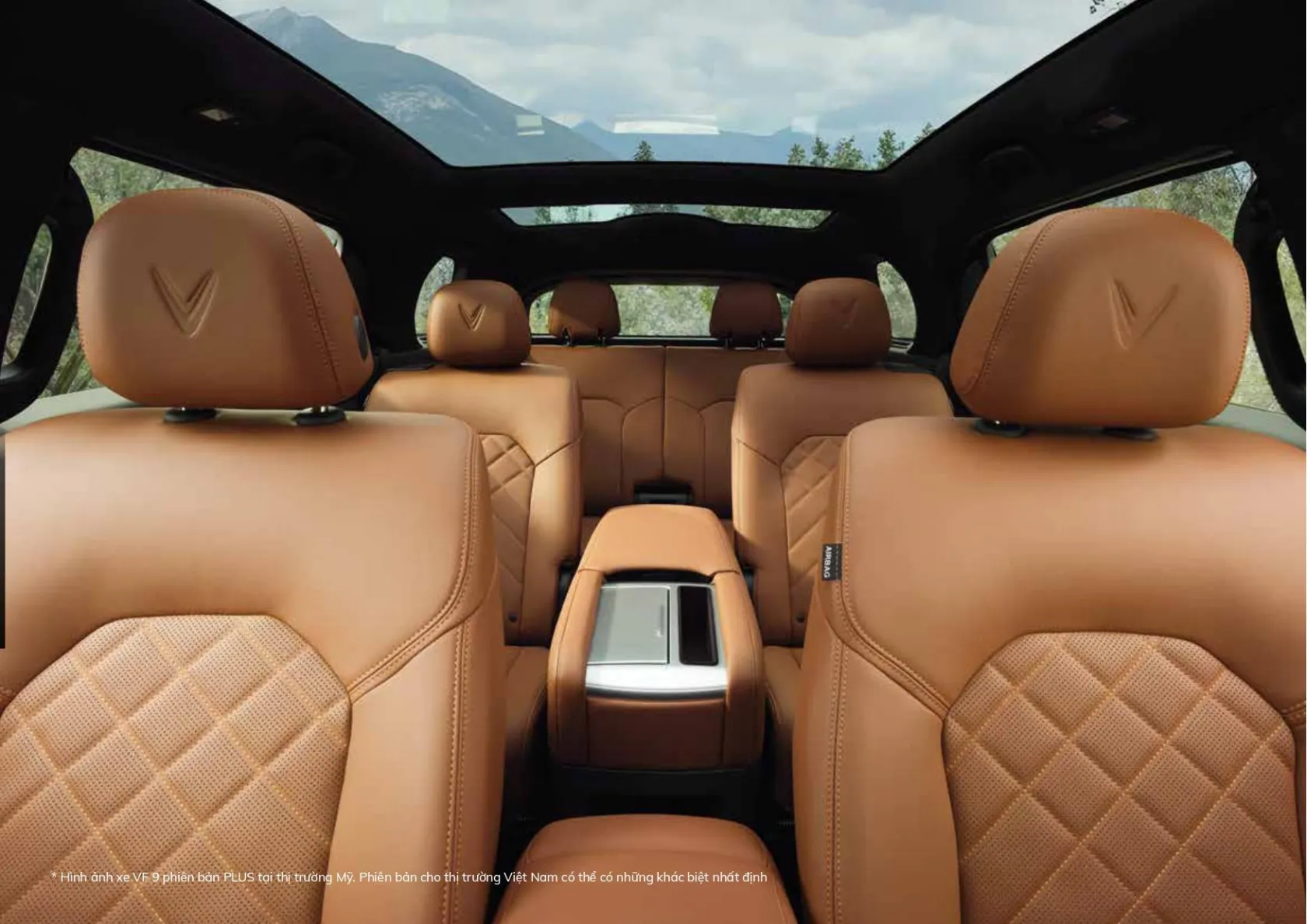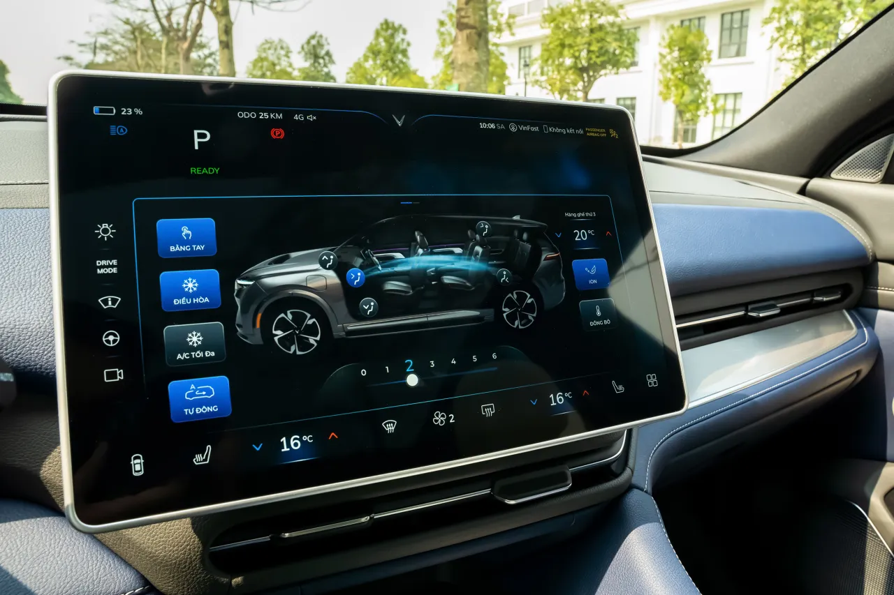 Hệ thống điều hòa với màng lọc HEPA than hoạt tính cùng cửa sổ trời toàn cảnh lớn, có chống tia UV 99%, mang đến cảm giác thư thái trọn vẹn cho người ngồi bên trong VF 9.