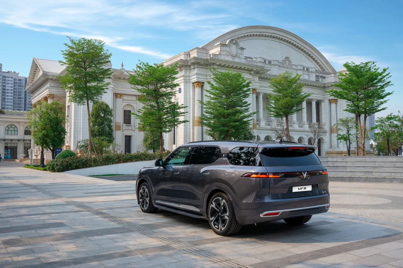 Những đường nét thiết kế hình học, có phần gân guốc tiếp tục được tái hiện ở khu vực đuôi xe VF 9, giúp hoàn chỉnh vẻ đẹp cơ bắp của mẫu SUV full-size "nhà" VinFast.