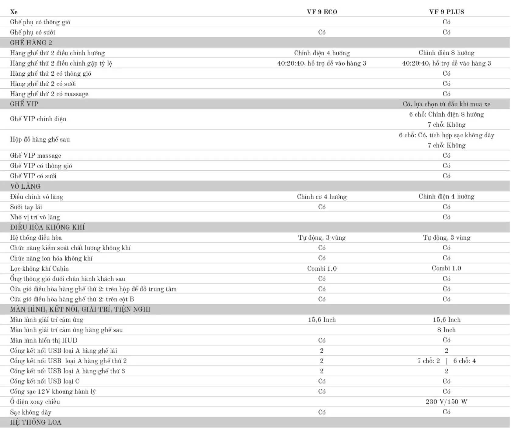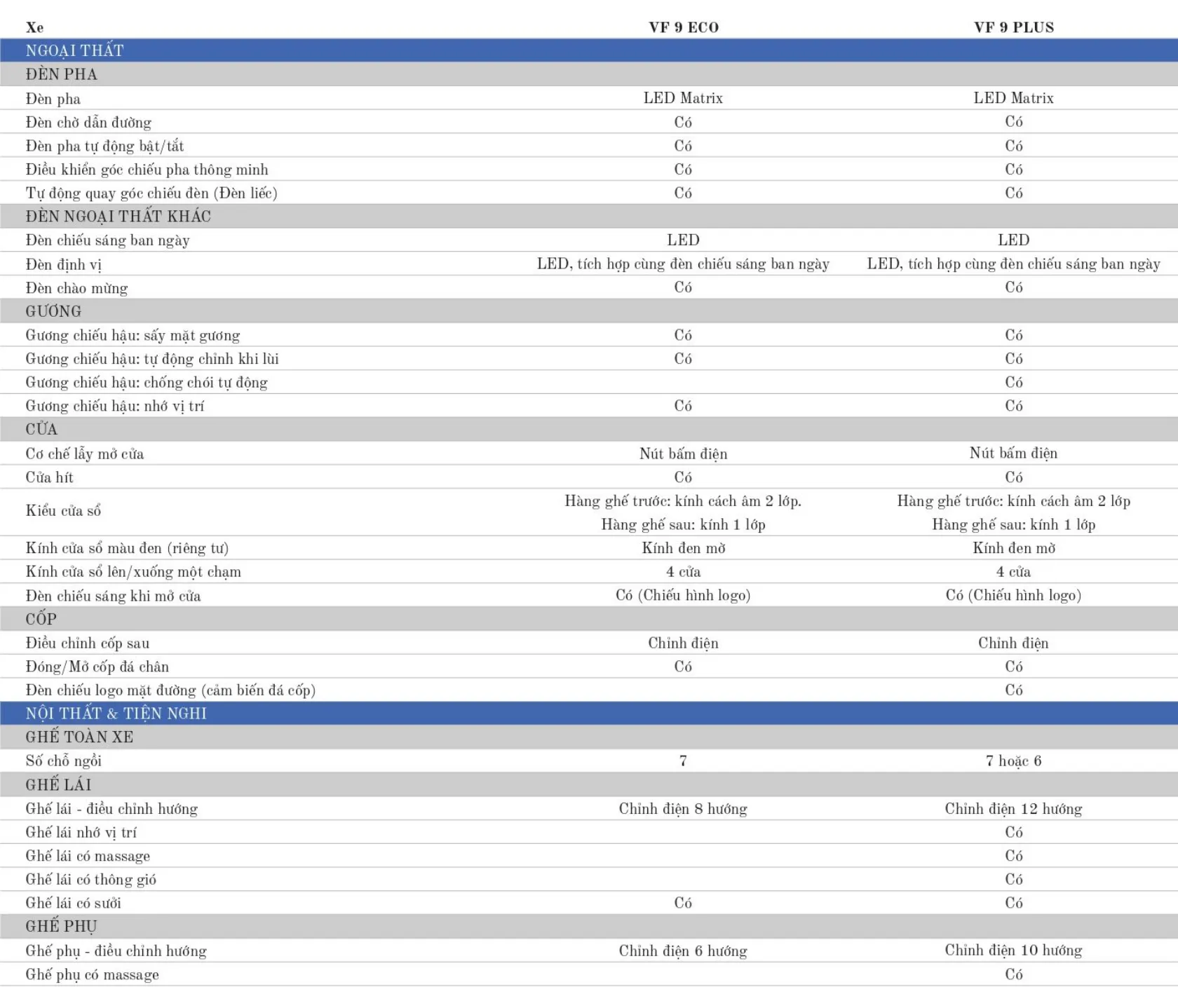 | Vinfast VF9 Eco + Pin: | 1.439.040.000 ₫ đ |